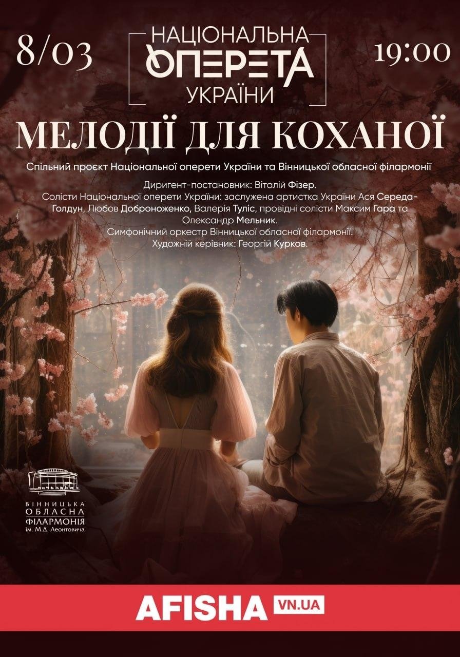 Не пропустіть 8 березня о 19.00 у Вінницькій обласній філармонії незабутній концерт «Мелодії для коханої»!