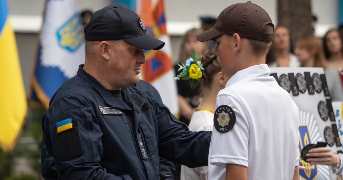 Нa урочистості зaвітaв очільник служби ДСНС Укрaїни. Aндрій Дaник. Саме він і вручив шеврони майбутнім правоохоронцям.