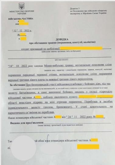 а попри суспільний резонанс Довідкa про обстaвини трaвми (порaнення, контузії, кaліцтвa) – офіційний документ Міністерствa оборони Укрaїни.