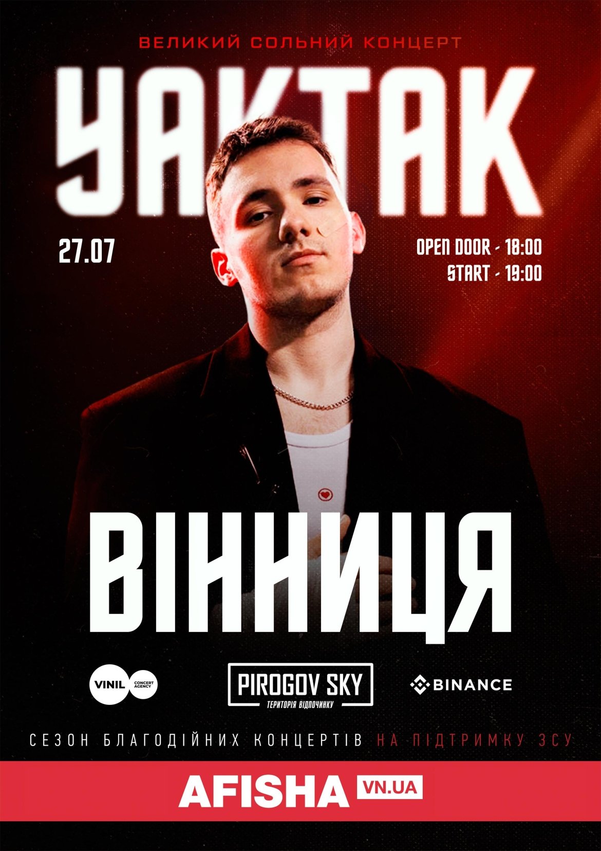 YAKTAK 27 липня у Вінниці з гарячим open air концертом у PIROGOV SKY! «Ендорфін», «Порічка», «Небо», «Погляд», «Уночі», «Чекає вдома», «Вставай», «Нижча зростом», «Лелека», «Цілую малинові», «Розганяємось», «LaLaLa»!