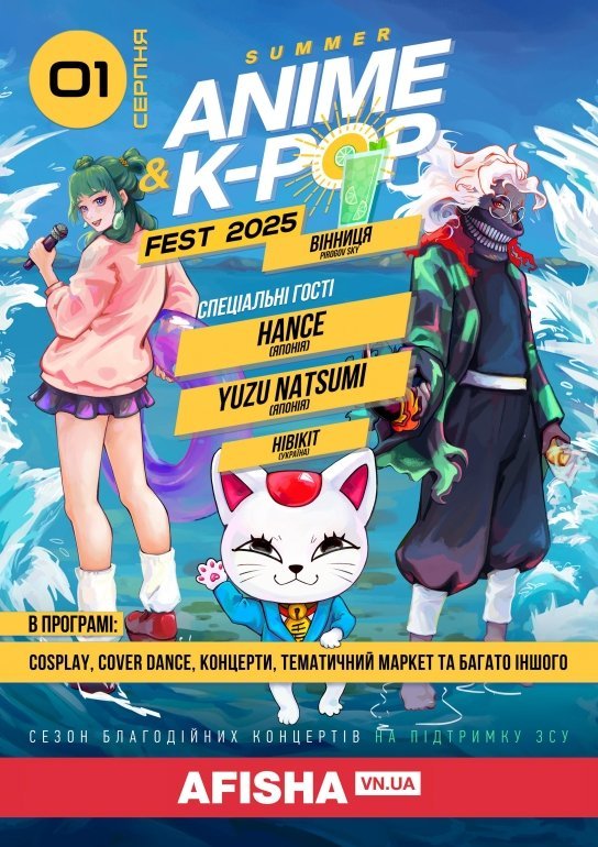 Квитки (від 450 грн) купуйте на сайті https://afisha.vn.ua/events/summer-anime-k-pop-fest-2025