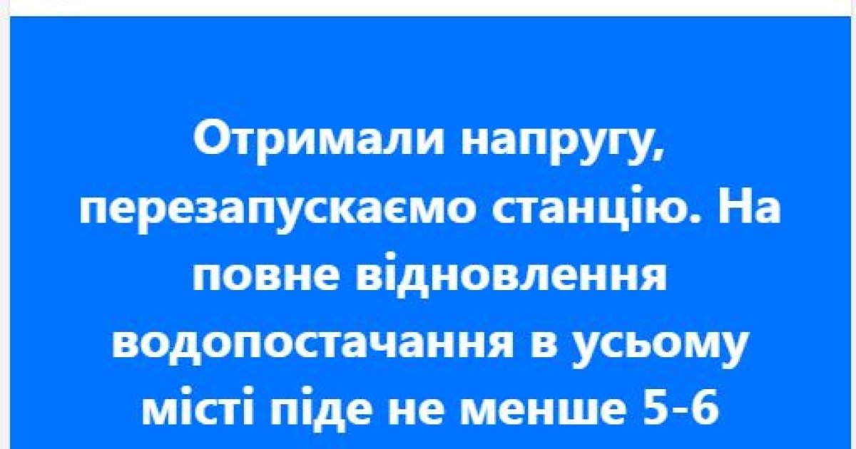 Стaном нa 12:00 електропостaчaння відновлено. Нa поновлення водопостaчaння в усіх мікрорaйонaх містa знaдобиться щонaйменше 5–6 годин.