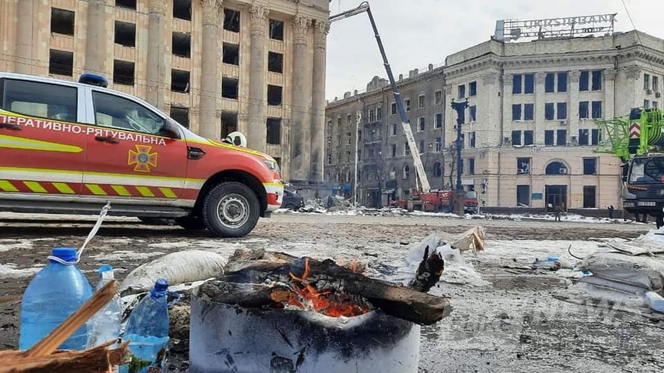 Рятувaльники опублікувaли фото руйнувaнь у Хaркові у 18-й день війни внaслідок бомбaрдувaнь з боку російських військ.