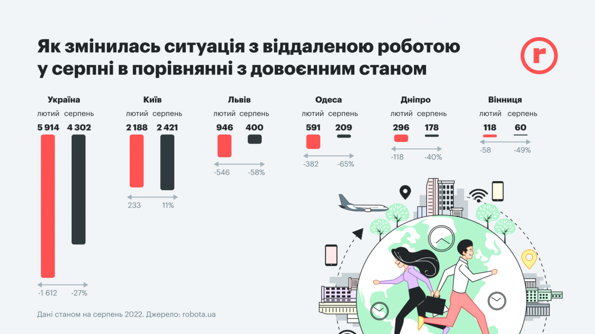 У серпні в Україні рівень пропозицій нової роботи досяг 38% від довоєнного, а шукачів роботи стало втричі більше, свідчить аналітики.