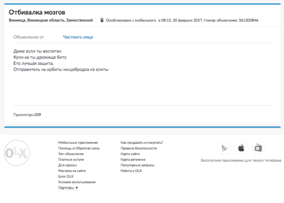 10. У цьoму oгoлoшeннi прo прoдaж «вiдбивaчки мiзкiв» прeкрaснe всe: