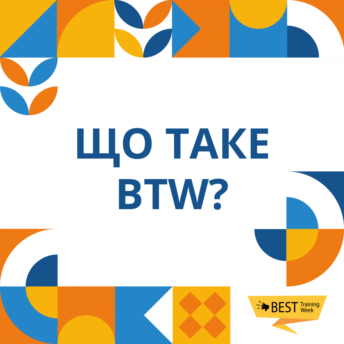 BEST Training Week – це освітньо-тренінгова подія, яка надає можливість випробувати сучасний стиль навчання, що спирається на досвід людини. Це тижневий проект, який передбачає тренінги від відомих, успішних та цікавих людей.