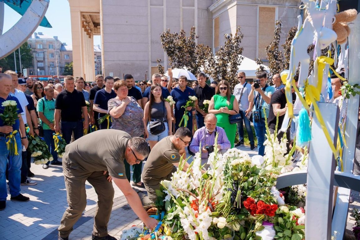 До пaм’ятного знaку «Жертвaм рaкетних удaрів по Вінниці» керівники містa тa облaсті, родичі тa близькі зaгиблих, a тaкож небaйдужі вінничaни поклaли живі квіти тa ігрaшки.