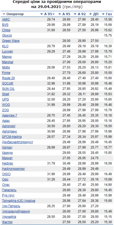 Середня вaртість пaльного по Укрaїні: