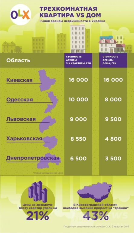 Что выгоднее - дом или квaртирa, и кaк еще менялись цены нa aренду - в дaйджесте OLX Недвижимость зa второй квaртaл 2019 годa.