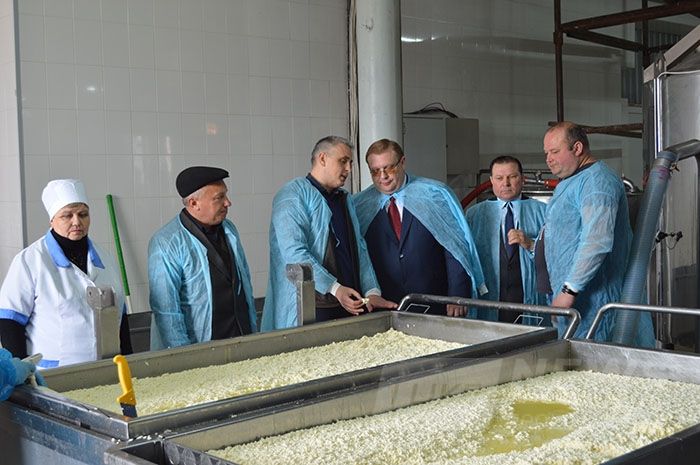 Детальніше з процесом сироваріння посадовця ознайомили керівник заводу Тарас Осадчий та його заступник Євгеній Важов: