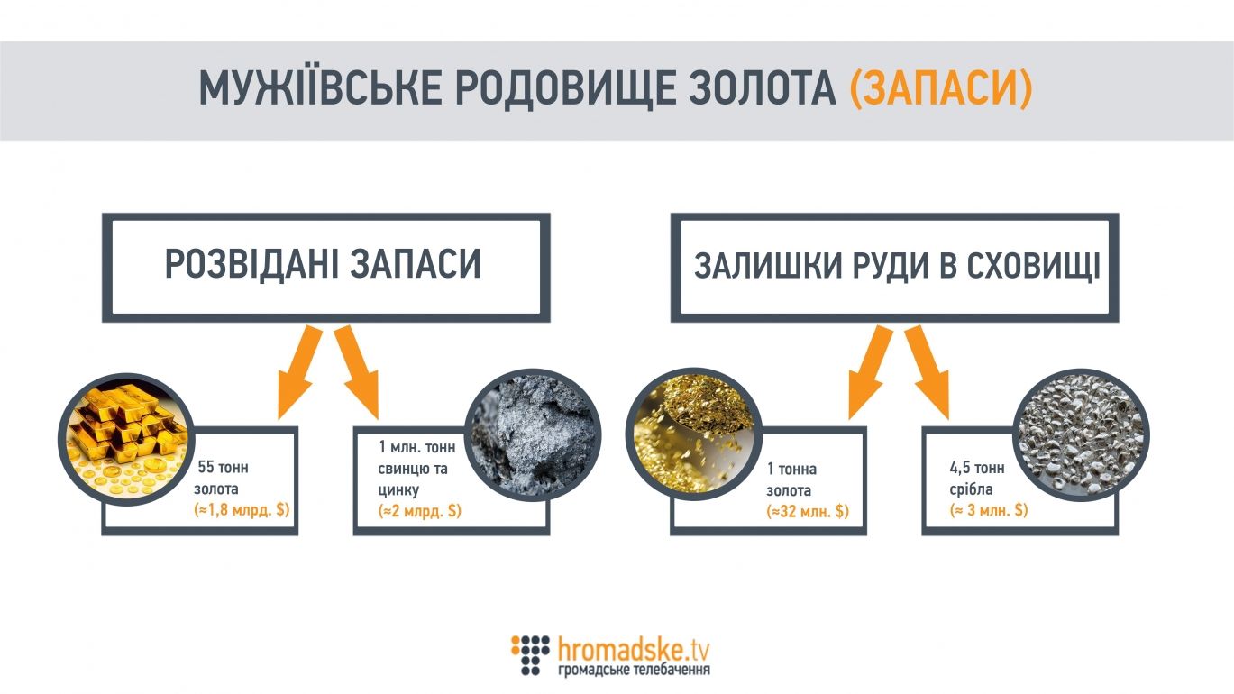 Як повідомлялося у 2014 році, ліцензією на видобуток на Мужіївському золоторудному родовищі володіла "Карпатська рудна компанія", яку контролював донецький бізнесмен Валерій Бредихін, партнер екс-голови МВС часів Януковича Віталія Захарченко.