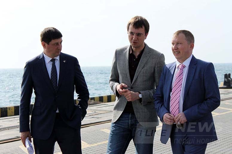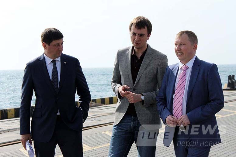Ігор Ткачук (крайній ліворуч), міністр інфраструктури Володимир Омелян, в.о.начальника Адміністрації морських портів України Райвіс Вецкаганс[/caption]