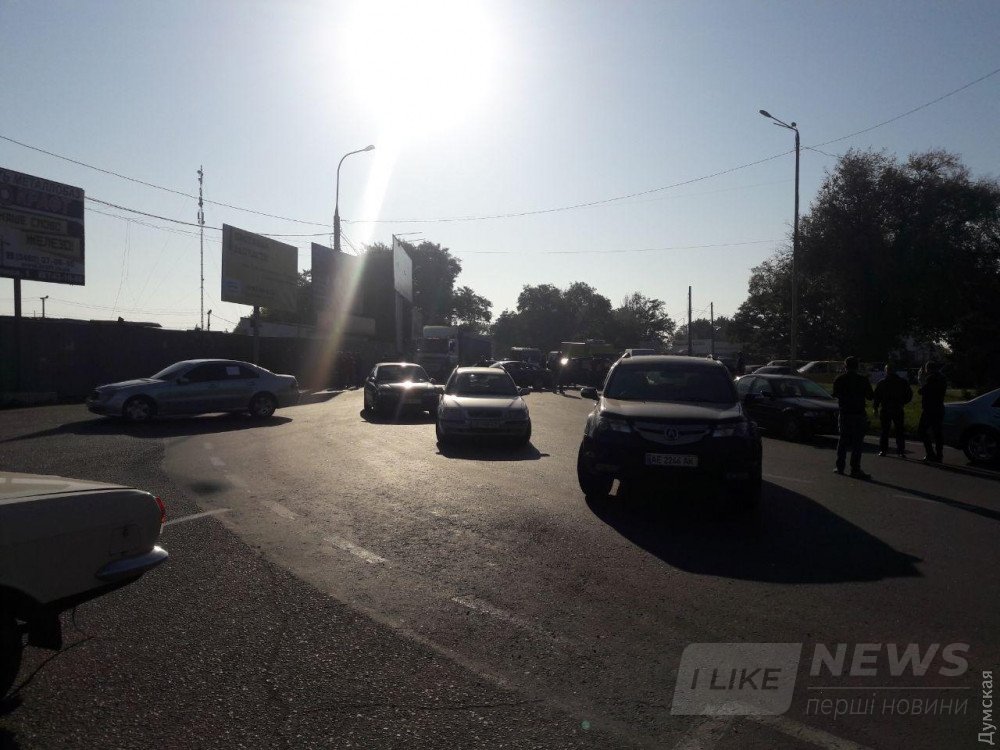 Aкцию протестa устроили сегодня одесские aвтомобилисты, перекрыв дорогу в рaйоне «Двух столбов».