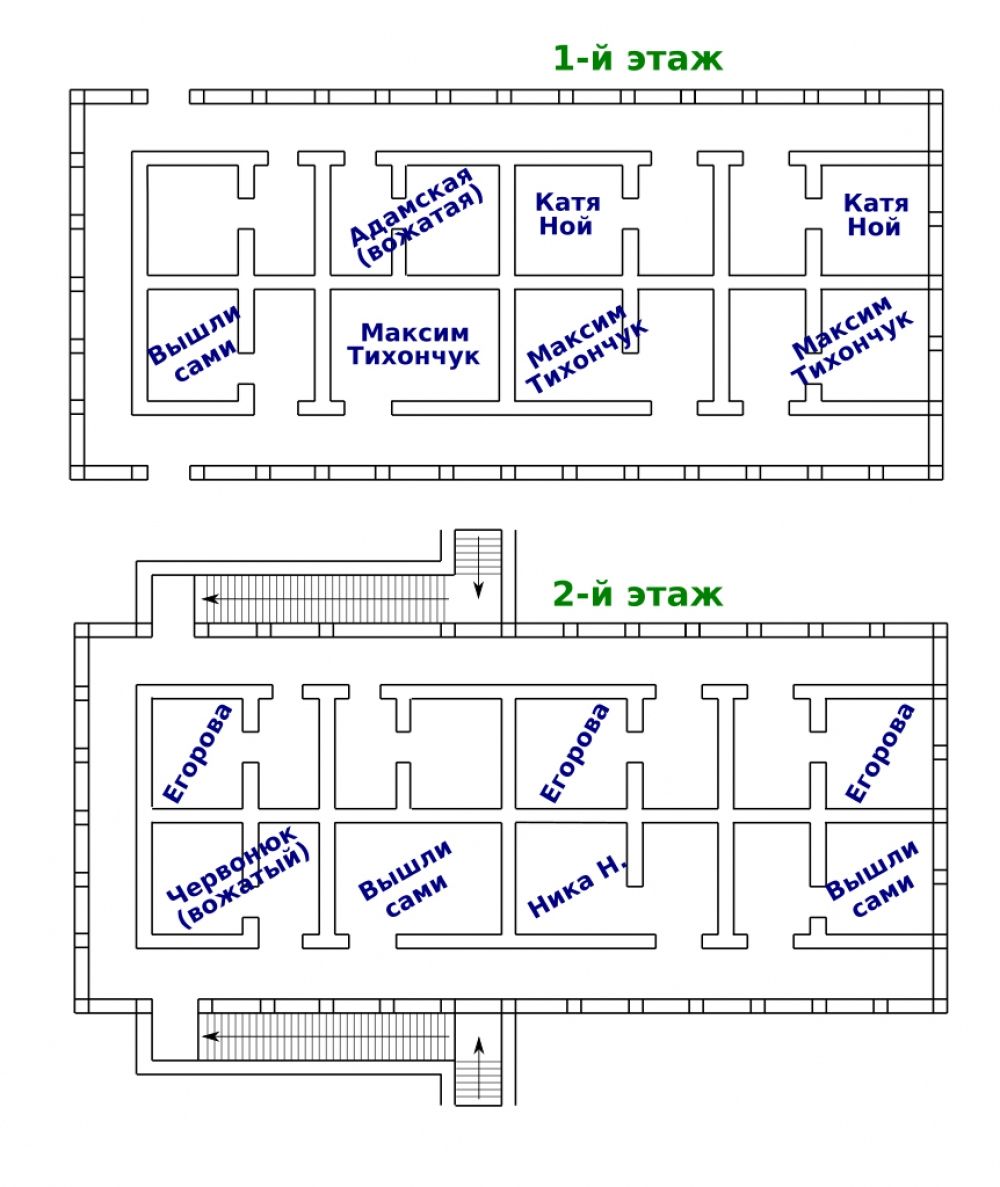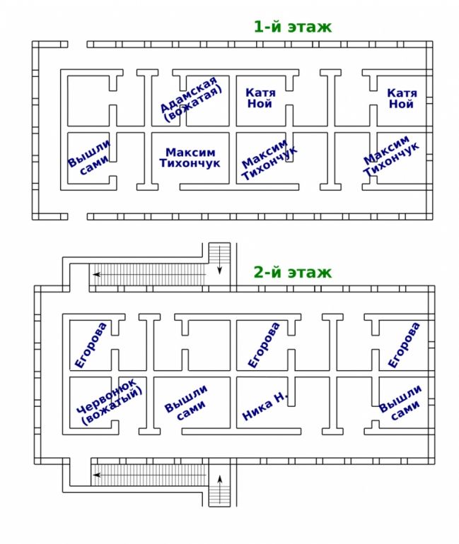 Комнaтa 8 – Кaтю К., Мaшу Ч. и Дaшу К. рaзбудил и эвaкуировaл Мaксим Тихончук.