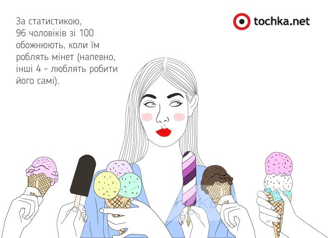 І просто пам'ятай, що за статистикою, 96 чоловіків зі 100 обожнюють, коли їм роблять мінет(напевно, інші 4 - люблять робити його самі). А 10-12% жінок зрідка, часто або навіть постійно під час мінету відчувають оргазм. І це не дивно, процес - не щось надприродне, а як поцілунок. Просто не в губи, а трохи нижче.