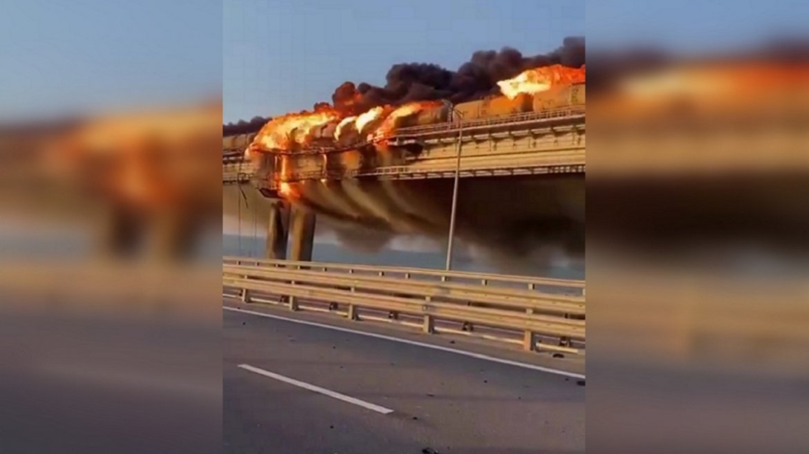 На Кримського мосту, який з'єднує росію та окупований Крим, вранці 8 жовтня зафіксували пожежу. Окупаційна влада заявляє, що там горить цистерна з паливом.