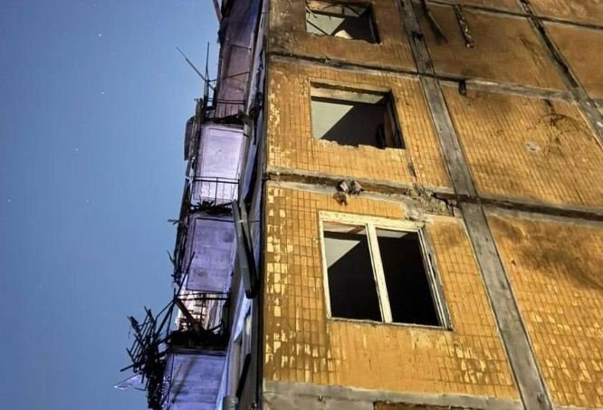 У Дніпровському районі уламки безпілотника влучили у житловий п’ятиповерховий будинок, а також зафіксовано падіння уламків поблизу магазину.