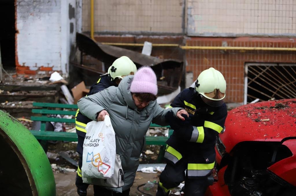 «Виїхав до багатоповерхівки у Соломʼянському районі столиці, де сталося загоряння внаслідок ранкової ракетної атаки. Картина гнітюча… Зараз на місці працюють рятувальники, пожежні, медики. На цю годину одна жінка загинула, постраждали 33 людини. 32 із них медики госпіталізували. Неподалік від будинку організували тимчасовий пункт обогріву, де людям надають необхідну допомогу, – зазначив мер Києва. – Також від ракетної атаки постраждали будівлі у Подільському, Святошинському, Печерському, Оболонському, Деснянському районах. Скрізь працюють екстренні служби. Внаслідок атаки у житлових будинках деяких районів міста відсутня електроенергія та водопостачання. Комунальні служби зараз працюють над їх відновленням», – написав Віталій Кличко.