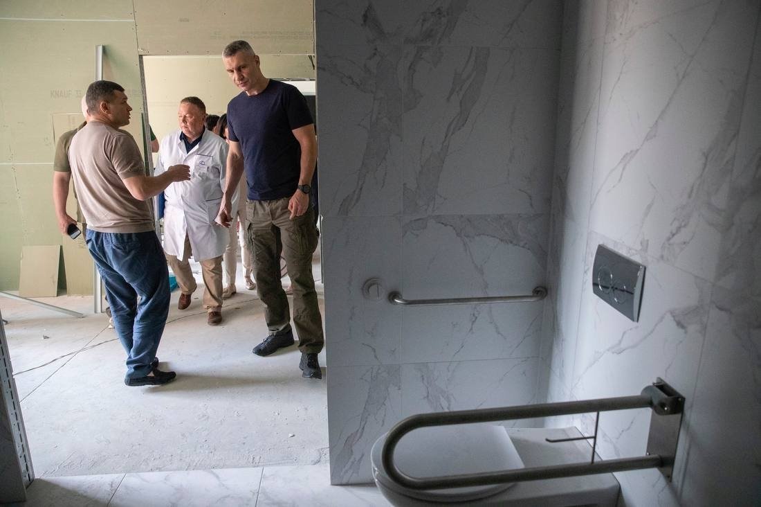«Перевірив, як триває капітальний ремонт Київського міського госпіталю, де створюємо міський реабілітаційний центр. На базі госпіталю ветеранів війни буде створений Медичний центр реабілітації та паліативної допомоги на 350 ліжок. Тут надаватимуть кваліфіковану реабілітаційну допомогу. Першу чергу ремонту плануємо завершити до жовтня цього року», - заявив Віталій Кличко.