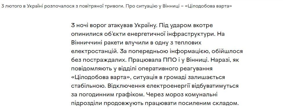 На Вінниччині ракети влучили в одну з теплових електростанцій. За попередньою інформацією, обійшлося без постраждалих - повідомляють у пресслужбі ВМР.