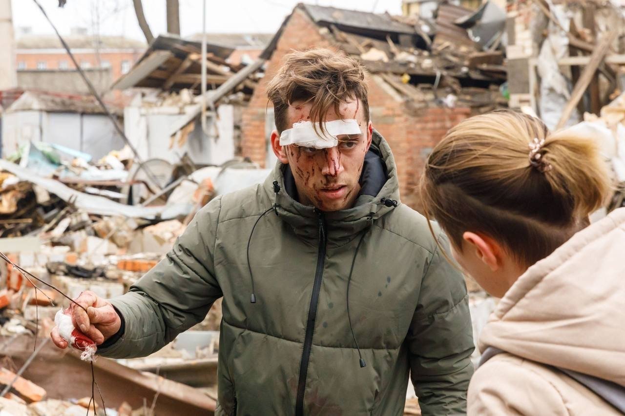 12 потерпілих госпіталізованих мають уламкові пошкодження я кінцівок, тулуба, обличчя, голови різних ступенів тяжкості. 3 пацієнтів у важкому стані, 9 – у середньому та легкому.