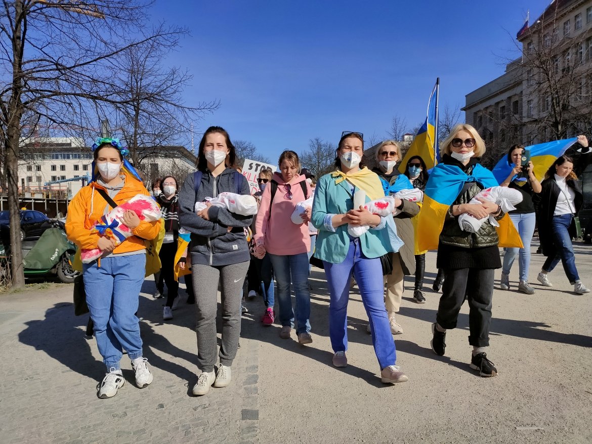 У Берліні акція прошла перед стінами російського посольства, де українськи жінки організували перформанс в пам'ять про дітей, що загинули під час російської агресії в Україні. Стрічка із 136 розвішеними на ній дитячими шкарпетками символізувала 136 дитячих життів, що обірвалися лише за один місяць війни. Жінки співали колискові та тужливих українських пісень та ділилися своїми історіями. Опісля перфомансу матері пройшли маршем до Бранденбурзьких воріт, де долучились до загальної демонстрації, організованої «Віче».