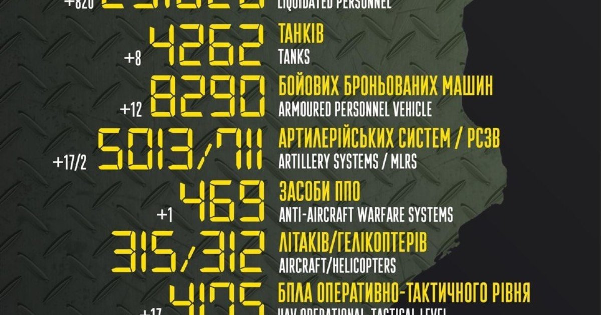 особового складу ‒ близько 251620 (+820) осіб ліквідовано,