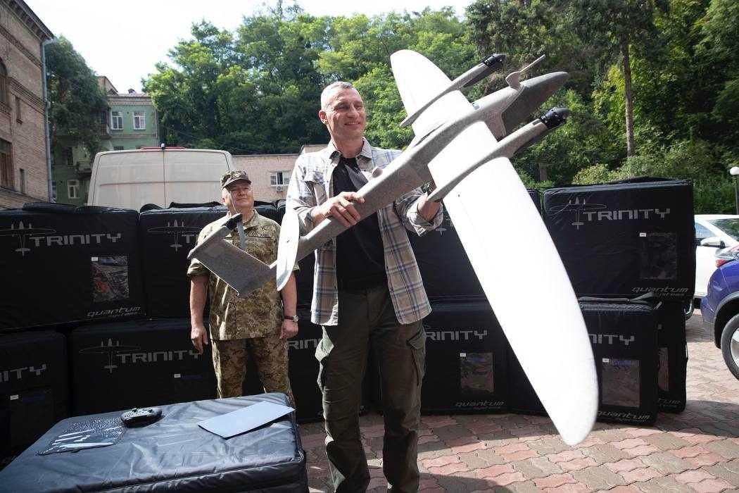 Сьогодні передав Державній прикордонній службі України першу партію – 28 картографічних дронів Quantum System типу «Trinity», оснащених навантаженням «Sony RX1» – RGB камерою. Про передачу Києву 100 таких найсучасніших дронів домовились з генеральним директором компанії Quantum Systems минулого року під час Саміту Stern Steward у Німеччині. І ось формальності завершені. У березні Quantum Systems підписала офіційну угоду з німецьким благодійним фондом #WeAreAllUkrainians gemeinnützige GmbH, через який дрони передають Києву», – зазначив Кличко.