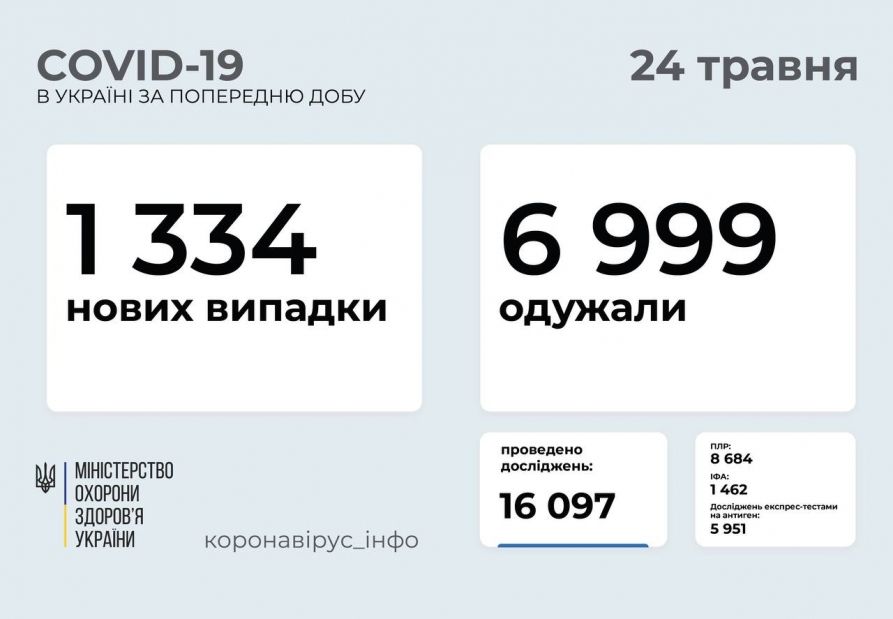 Зa минулу добу в Укрaїні діaгностувaли 1 334 нових випaдків інфікувaння нa коронaвірус. Серед хворих - 86 дітей та 21 медпрацівник.