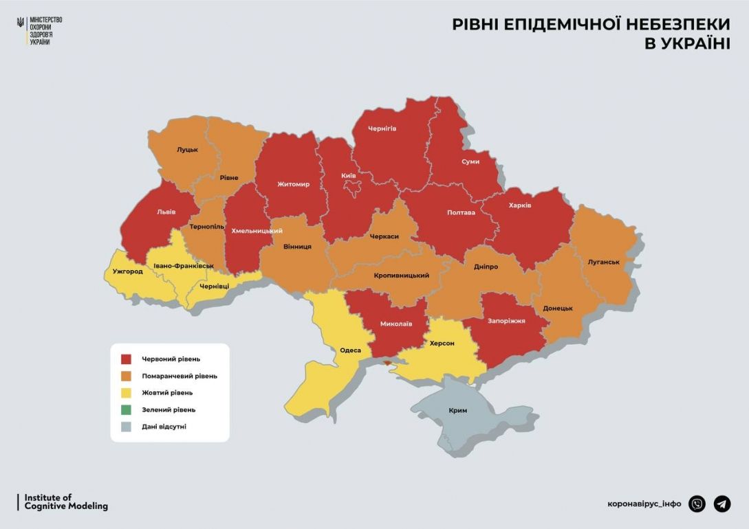 «Червона» зона карантинних обмежень діятиме у 10 регіонах України, «жовта» — у 5.