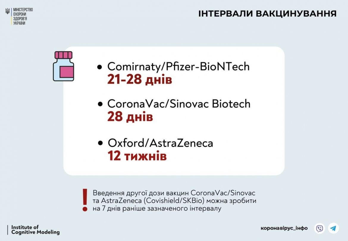 Щеплення 2-ю дозою вакцини бажано робити у визначений термін: