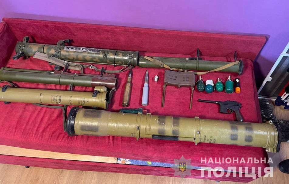 У результаті виявлено та вилучено автомат АКСУ, направляючі протитанкові керовані ракети, міни, артилерійські постріли, гранати, набої різного калібру, пістолети, карабіни та рушниці. Також вилучено 400 000 гривень і близько 8 000 доларів США.