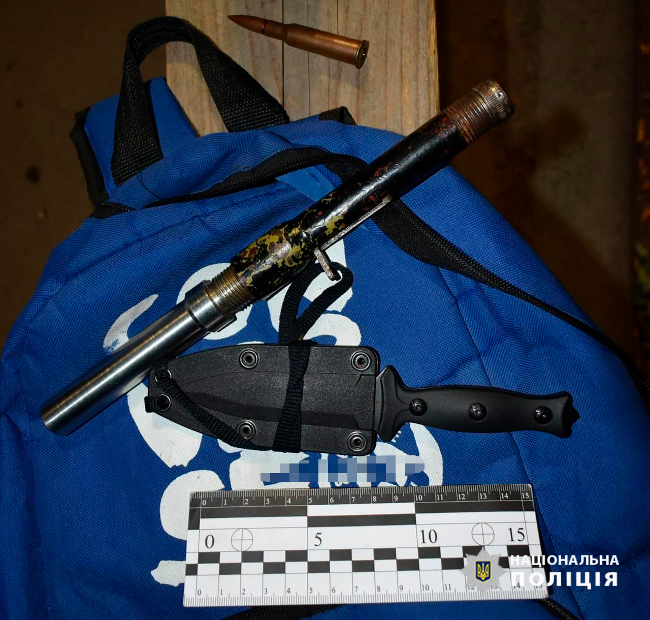 За інформацією начальника Відділу поліції № 3 Вінницького райуправління поліції Ігоря Чебана, поліцейські зупинили чоловіка 14 жовтня вночі на одному з блокпостів у Вінницькому районі за порушення комендантської години. Під час поверхневого огляду у його рюкзаку та кишені одягу правоохоронці виявили саморобну зброю, набої до неї, ніж та два балончики з газом сльозогінної дії.