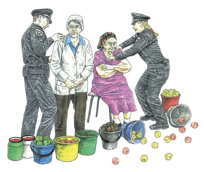 Торгівля в містах з рук на вулицях, площах, у дворах, під’їздах, скверах та в інших невстановлених місцях тягне за собою накладення штрафу від одного до семи неоподатковуваних мінімумів доходів громадян з конфіскацією предметів торгівлі або без такої.