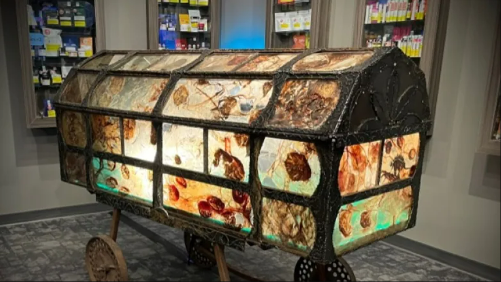 Так художниця створила роботу під назвою «Скриня зі скарбами», на виготовлення якої у неї пішло два роки. Меттсон натягнула плаценту на металевий каркас і помістила об'єкт, що вийшов, на колеса.