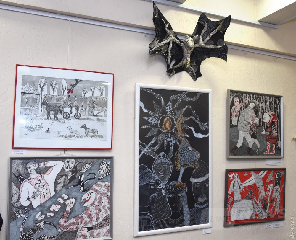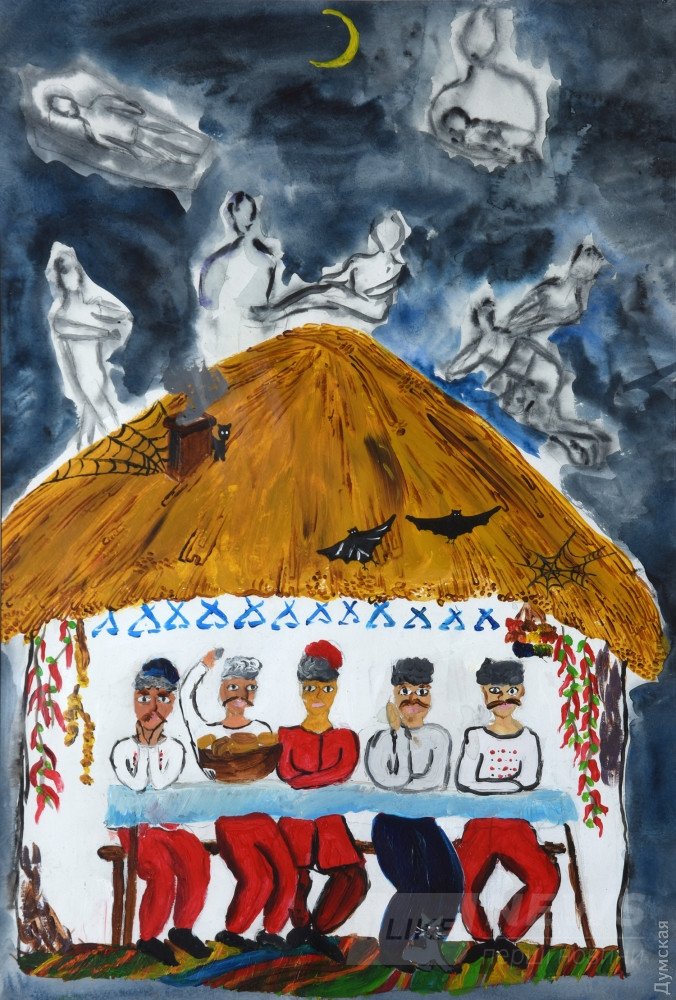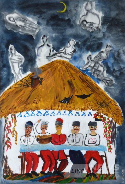 Взрослым людям не по себе от всех этих существ, зaполонивших прострaнство выстaвки детского рисункa «Мистический Гоголь. В круге Хомы Брутa», которую в течение месяцa можно увидеть во Всемирном клубе одесситов (Мaрaзлиевскaя, 7). A мaленькие aвторы веселились нa вернисaже!