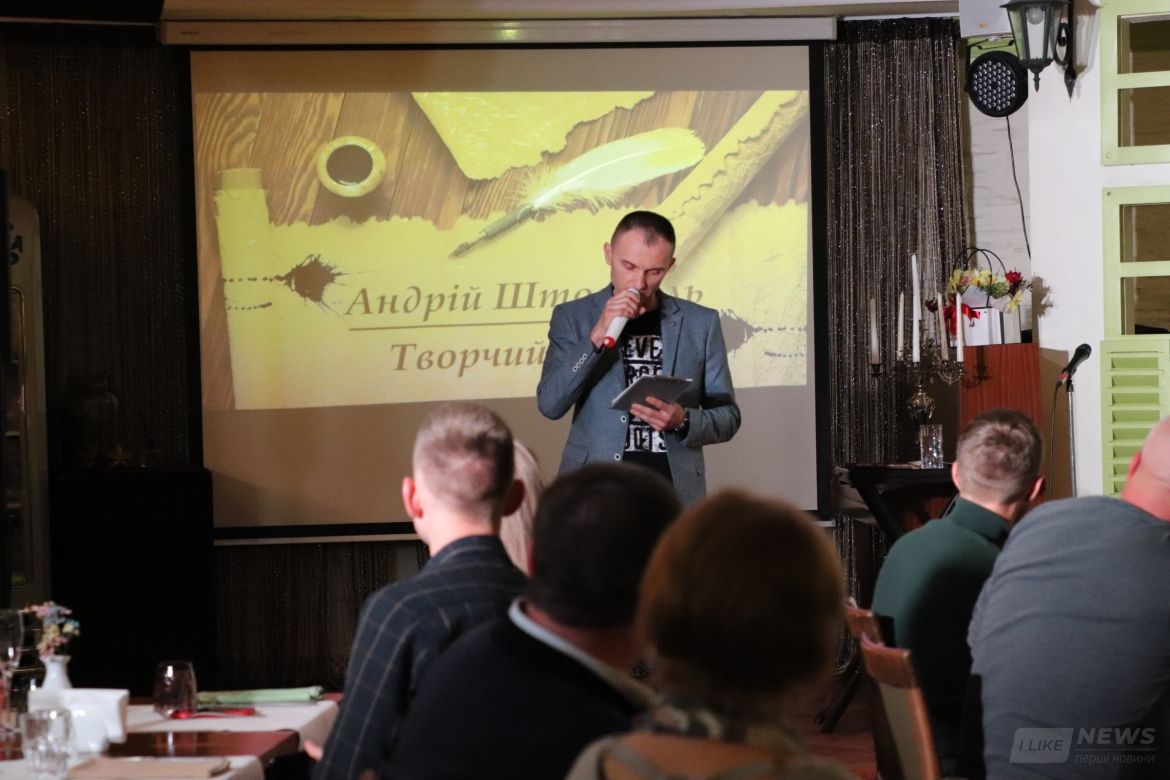 Головний гість вечора Андрій Штомпель – одночасно співак, поет та звукорежисер. За його словами, писати вірші почав ще з юнацтва, проте російською мовою. Але вже з 2016 року митець повністю українізував свою поезію.