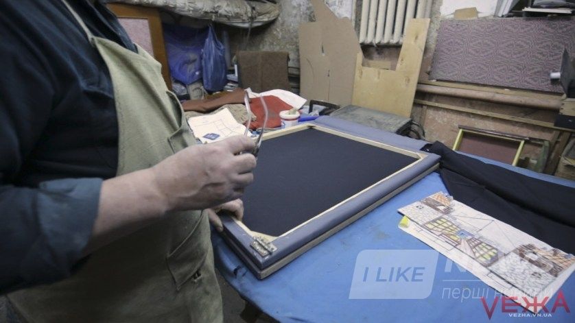 Під час душевної розмови він з особливим захопленням демонструє, як будівельним степлером пришиває тканину до дерев’яного каркасу, тоді хвацько підхоплює молоток, який лежить на столі поряд із акуратно та по-армійськи чітко розставленими іншими інструментами. Забиває цвяшки щільніше. Педантично точно відмірює відстань між кожним цвяшком, паралельно занотовуючи щось на папері.