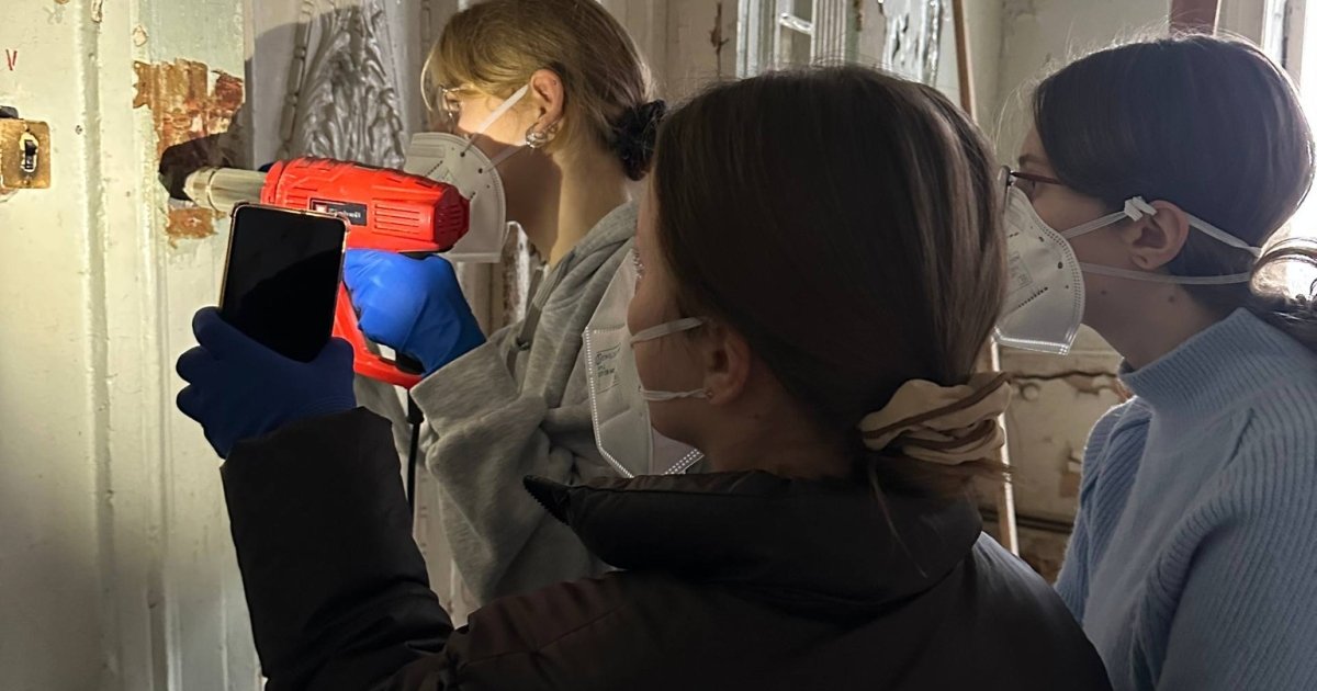 Відбувся практикум з розчистки пофарбувальних шарів у в у пам’ятці архітектури «Палац» (саме так називають будинок – ред.).