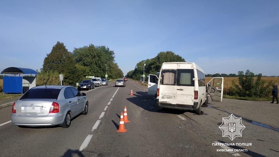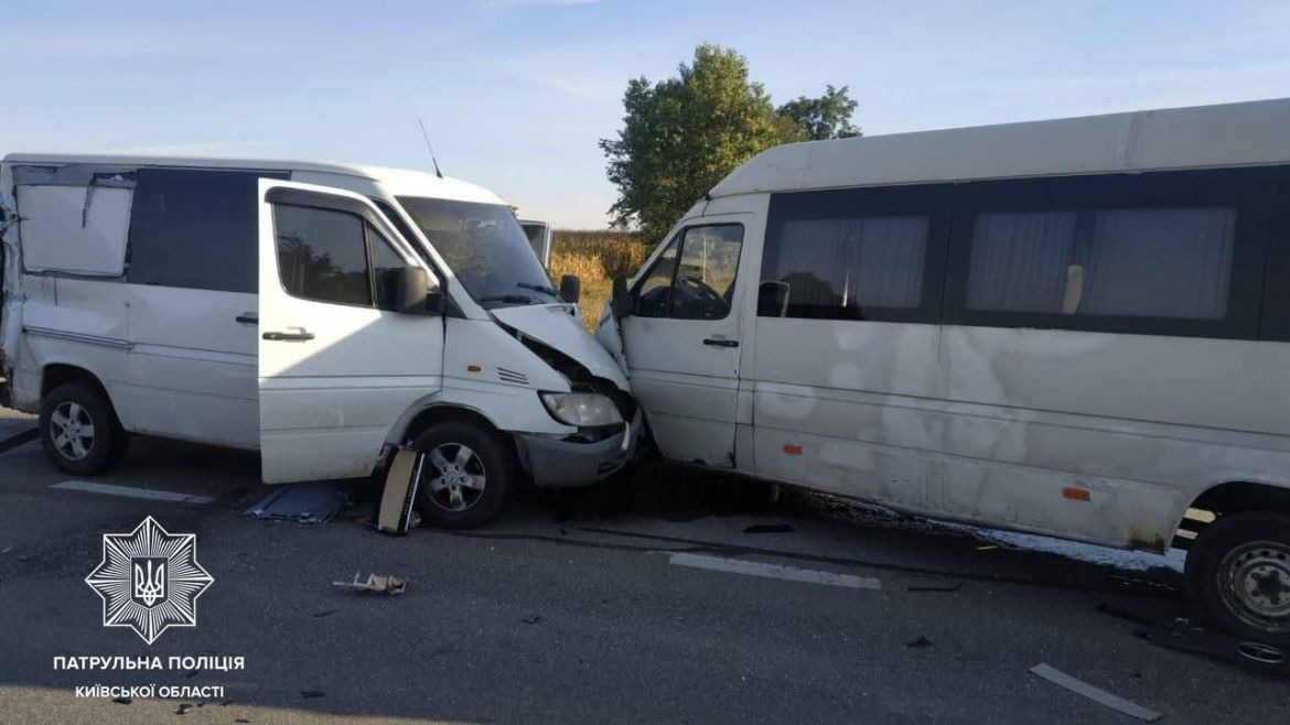 Аварія сталася сьогодні вранці, 7 вересня. На 30 км автодороги Н-08 Бориспіль - Маріуполь, в напрямку міста Переяслав, зіткнулося дві маршрутки. Крім цього, в аварію разом з мікроавтобусами потрапили легкове авто і фура.