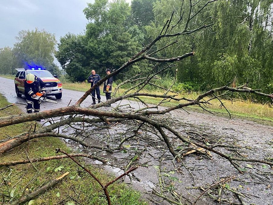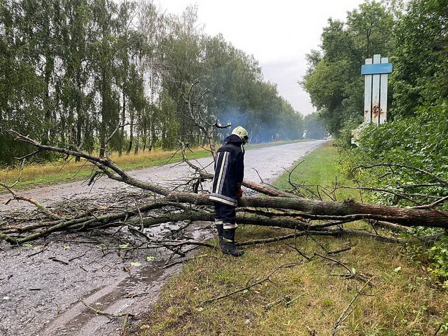 12 серпня внаслідок сильного пориву вітру та дощу з автошляхів області бійці ДСНС прибирають повалені вітром дерева, які перешкоджають руху автотранспорту.