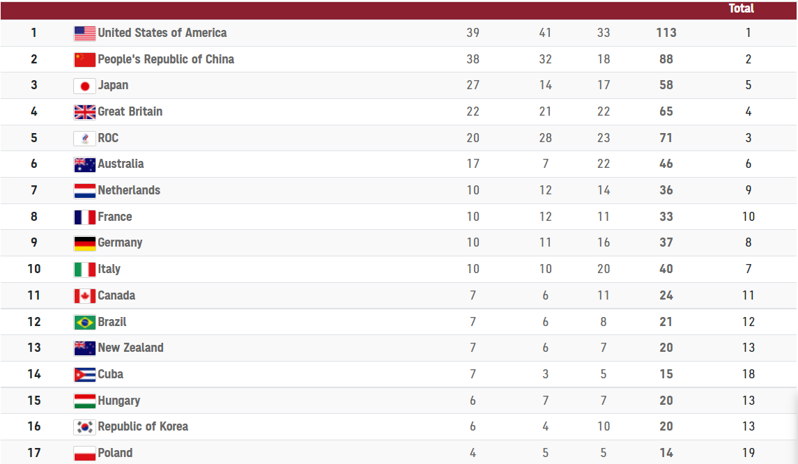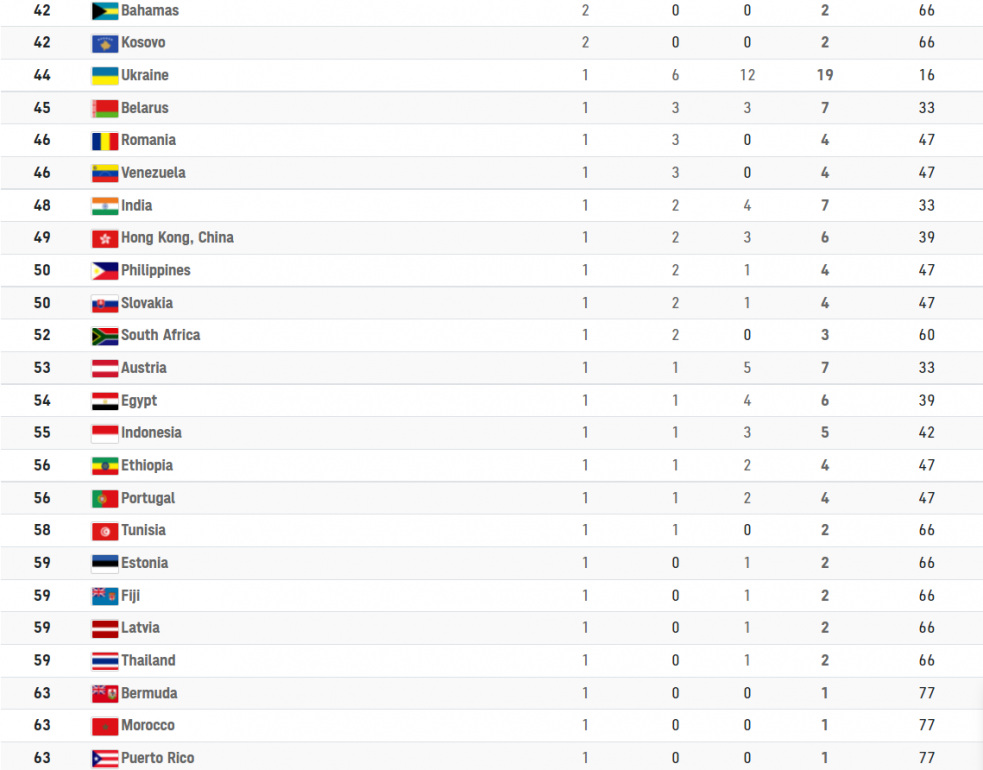 За остаточним місцем в загальному заліку Олімпіади-2020 Україна розташувалася на 44-й позиції, повідомляє Уніан.