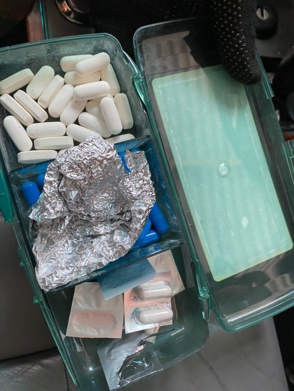 Також в автомобілі будо виявлено декілька десятків набоїв та пігулки невідомого походження.