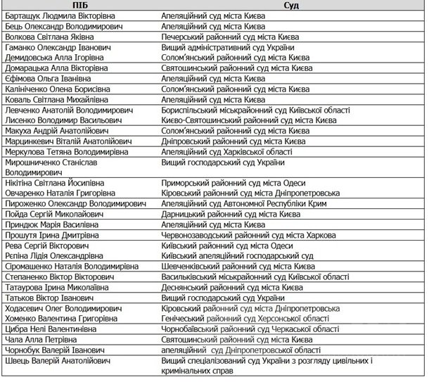 Потім були звільнені багаторічний глави Вищого господарського суду Віктор Татьков, суддя Шевченківського райсуду Наталія Сіромашенко.