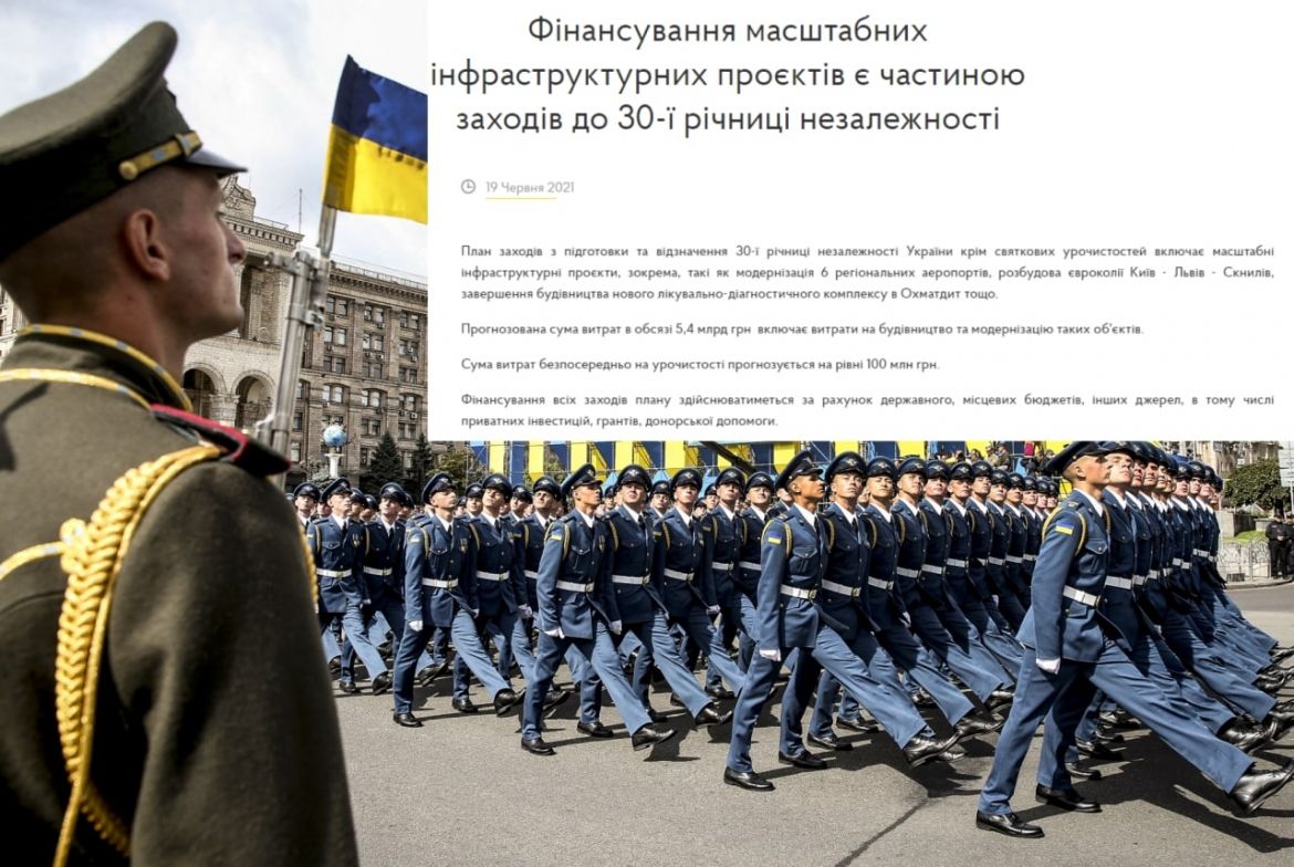 На саме свято планують витратити тільки близько 100млн грн. Фінансування буде здійснюватися за рахунок державного, місцевих бюджетів, інших джерел, в тому числі приватних інвестицій, грантів, донорської допомоги.