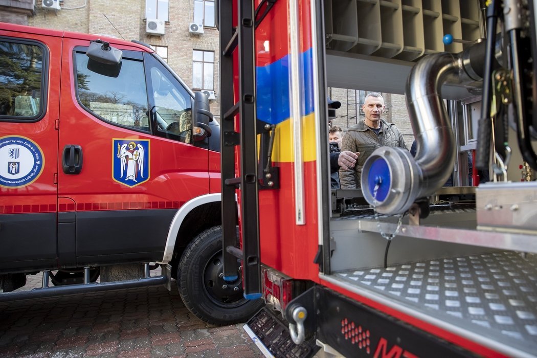 «Столиця отримала чергову партію допомоги – 5 нових пожежних автомобілів. Зокрема, 2 нових автомобілі Renault Kerax з колісною формулою 6х4, 1 автомобіль Renault MDB3 та 2 Iveco Daily з колісною формулою 4х4. Усі машини підвищеної прохідності з сучасними системами піногасіння, – зазначив мер Києва. – Передало їх столиці німецьке місто-побратим Лейпциг, профінансувало Федеральне міністерство економічного співробітництва та розвитку Німеччини. А виробили в найкоротші терміни польські партнери – компанія Mito Truck», – повідомив Віталій Кличко.
