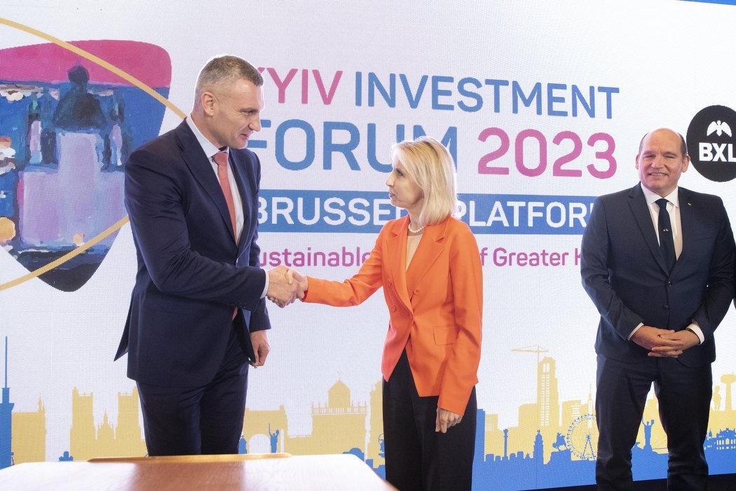 «Київ та Брюссель тепер міста-побратими. Сьогодні на Київському інвестиційному форумі, який відбувається в Брюсселі, ми з Філіпом Клозом підписали угоду про співпрацю наших міст. Для відновлення і розвитку української столиці дуже потрібна міжнародна підтримка. Брюссельська платформа, яку минулого року створили європейські міста задля допомоги Києву, вже дала старт активним процесам у важливих для Києва проектах. – Зокрема, зі створення сучасного реабілітаційного центру для військових, оснащення відділень медзакладів столиці, облаштування лабораторії з виробництва інноваційних біомедичних продуктів, соціальної підтримки, – зазначив мер Києва. – Сьогодні ми співпрацюємо з європейськими муніципалітетами, які комунікують з місцевими бізнесами, шукають можливості для реалізації пріоритетних для нас проектів. Зокрема, медицини, енергетичної та екологічної безпеки, освіти, комунальної сфери, проектів з оновлення громадського транспорту. Відносини Києва та Брюсселя є прикладом ефективної співпраці міст, яку ми продовжимо розвивати», – наголосив Віталій Кличко.