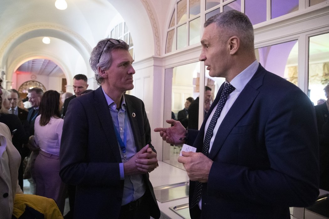 Мер Києва Віталій Кличко разом з братом Володимиром у Давосі відвідали захід, організований Швецією в рамках Global Conversations, де відбувся міжнародний діалог щодо великих інвестицій, сталого розвитку та ролі інновацій у його забезпеченні. Мер Києва поспілкувався з принцем Швеції Даніелем і міністром фінансів Швеції Елізабет Свантессон, представниками технологічних компаній і великого бізнесу. Про це Кличко повідомив у своєму Telegram-каналі.