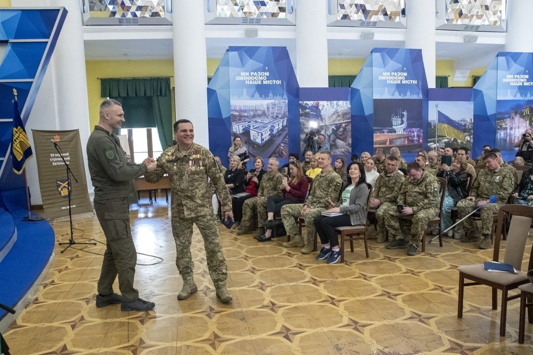 Мер Києва Віталій Кличко у столичній мерії в другу річницю звільнення Київщини від російських окупантів вручив відзнаки від столиці військовим 23-го Окремого стрілецького батальйона, які захищали Київ та область. Медалі «Честь. Слава. Держава» отримали 45 бійців.