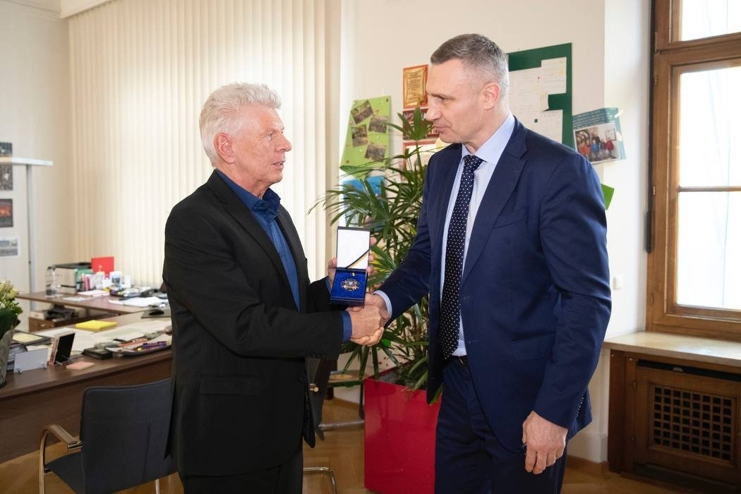 Під час зустрічі Віталій Кличко висловив свою подяку та вручив Дітеру Райтеру нагрудний знак «За сприяння обороні Києва».